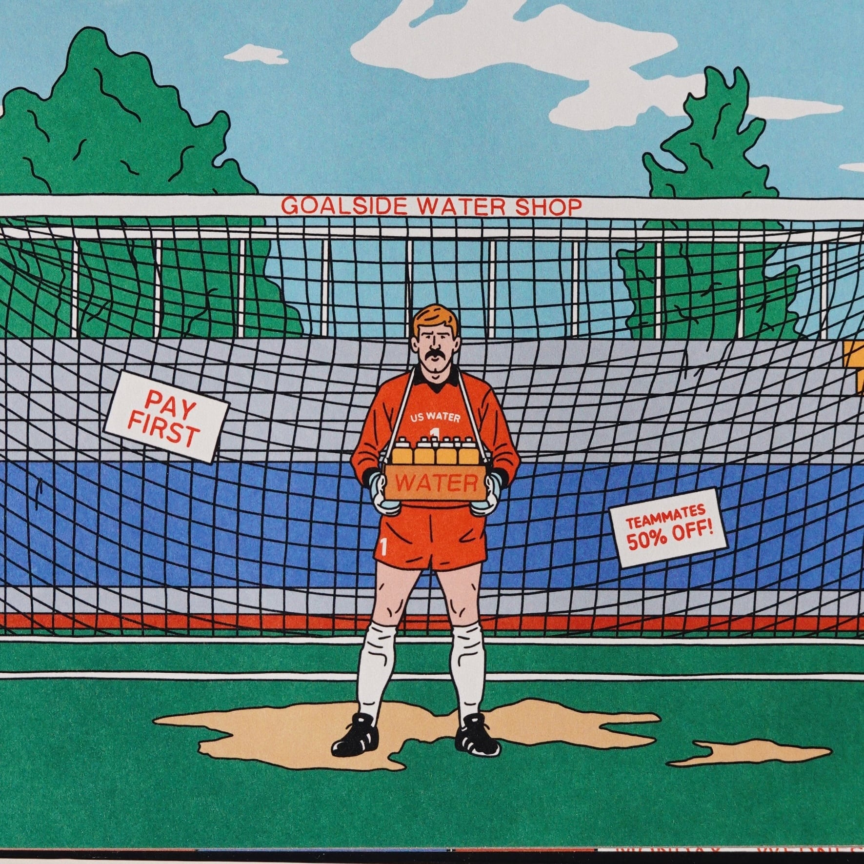 ヌーディストが闊歩するスモークショップに、窓が欠けた怪しげなホテル。ゴールキーパーがドリンクを売れば、若者がレコード店に吸い込まれていきます。